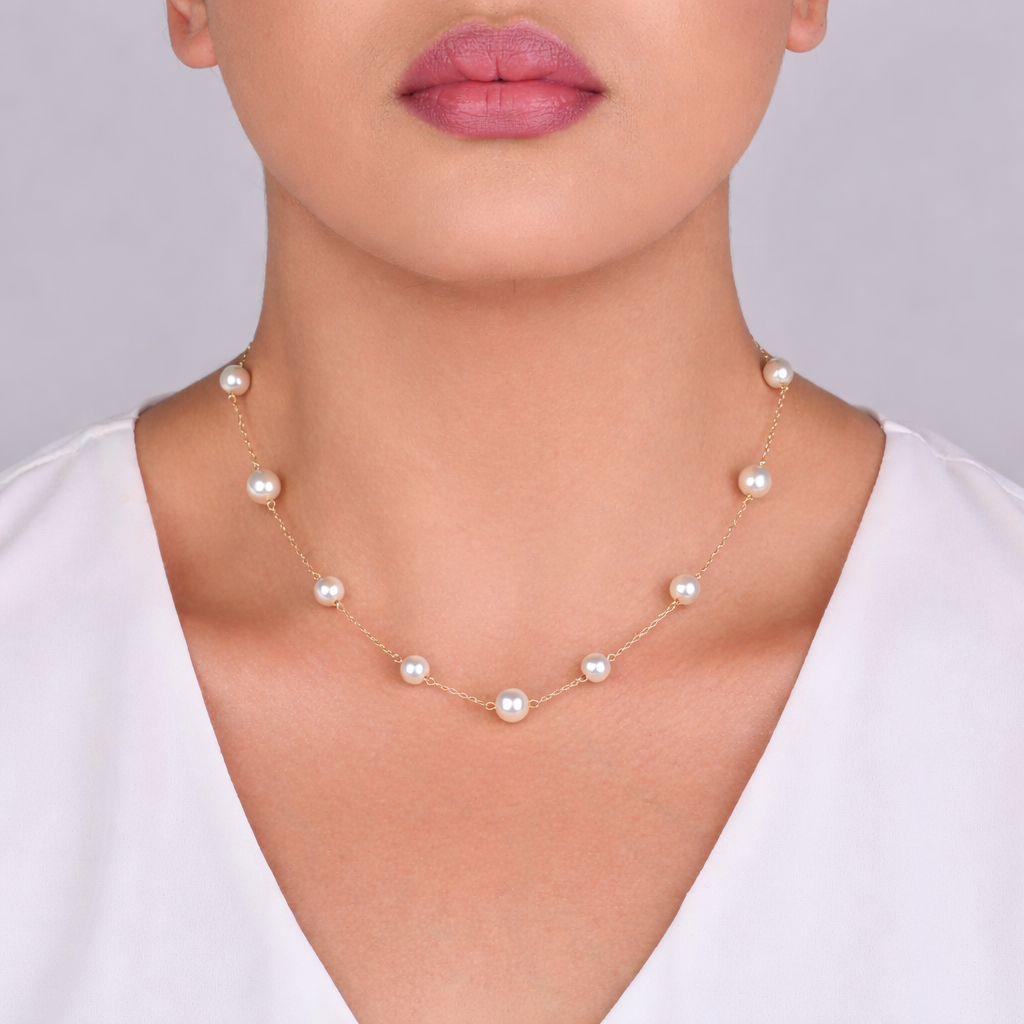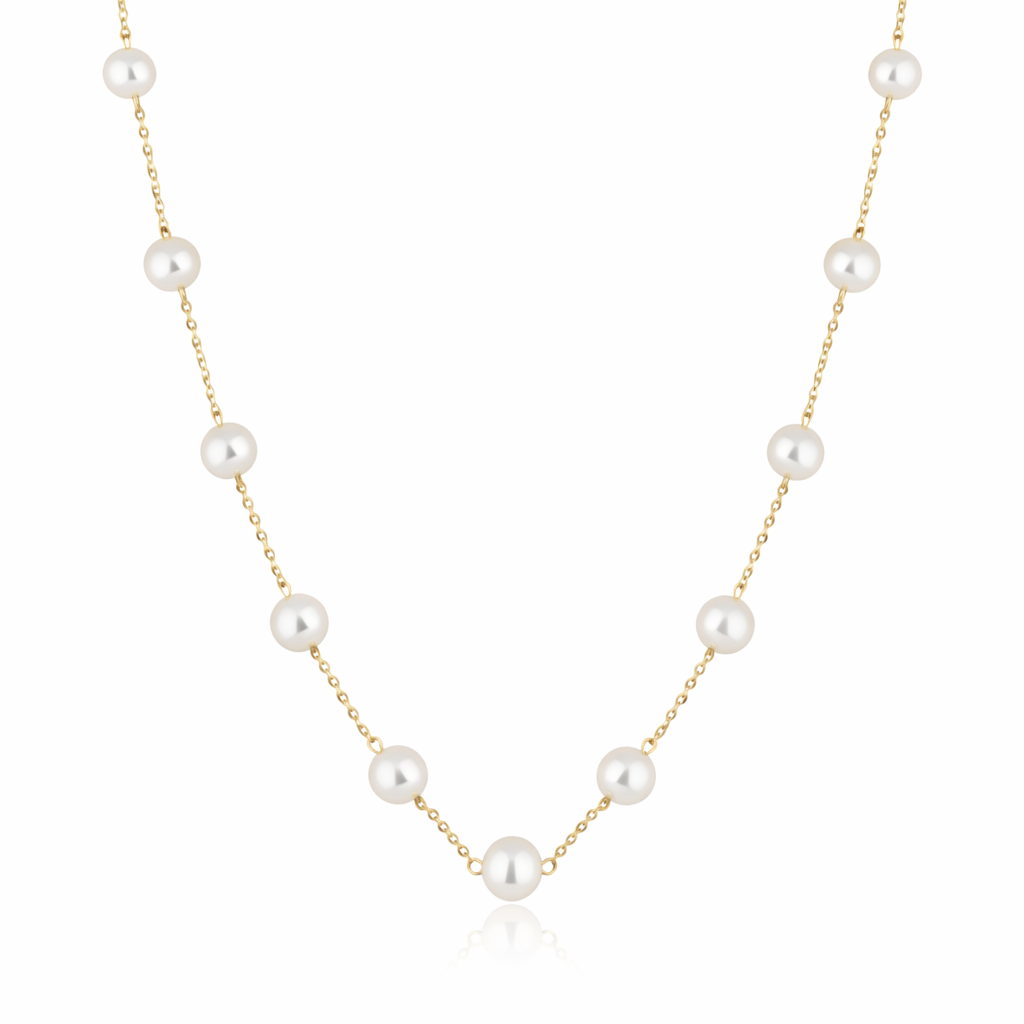 Corrente delicada intercalada por pérolas, criando um visual clássico, elegante e atemporal — perfeito para quem ama joias discretas, mas marcantes.