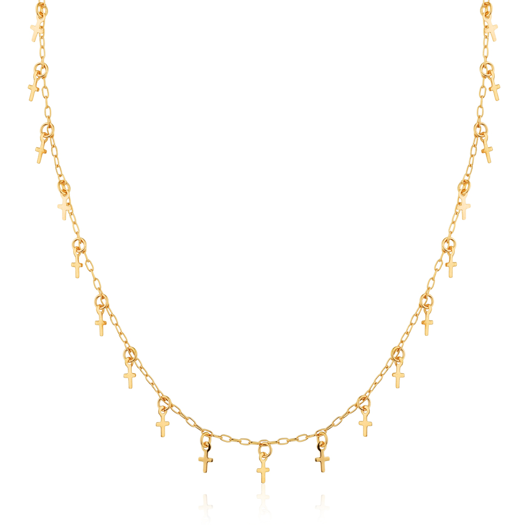 Corrente delicada com pingente de cruz mini, trazendo um toque simbólico e sofisticado. Um design discreto e refinado, perfeito para quem ama acessórios com significado.